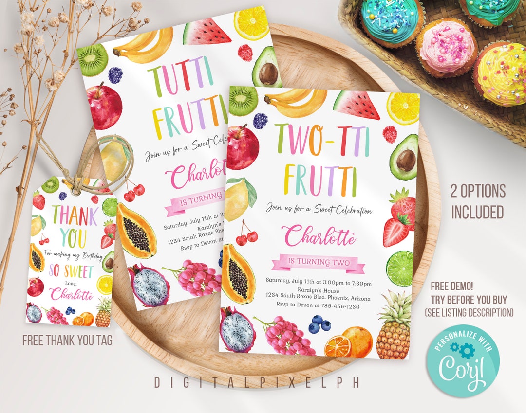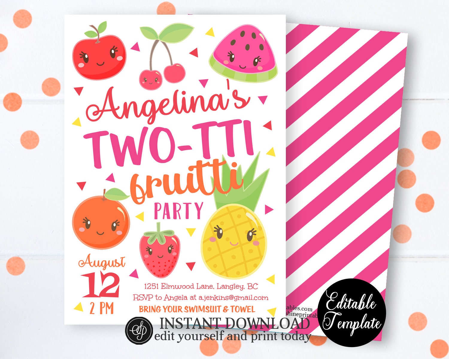 Twotti Frutti Birthday Invitation Template Tutti Frutti Etsy
