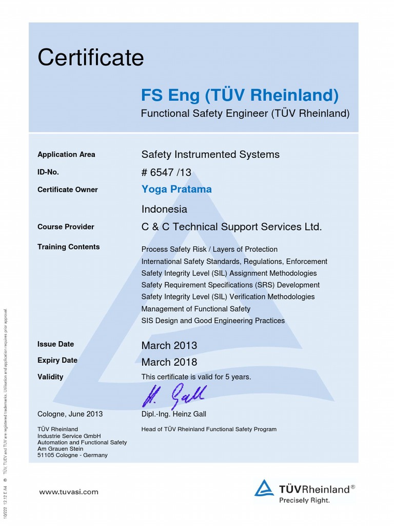 TUV Certified Functional Safety Expert in IEC 61511 and IEC 61508