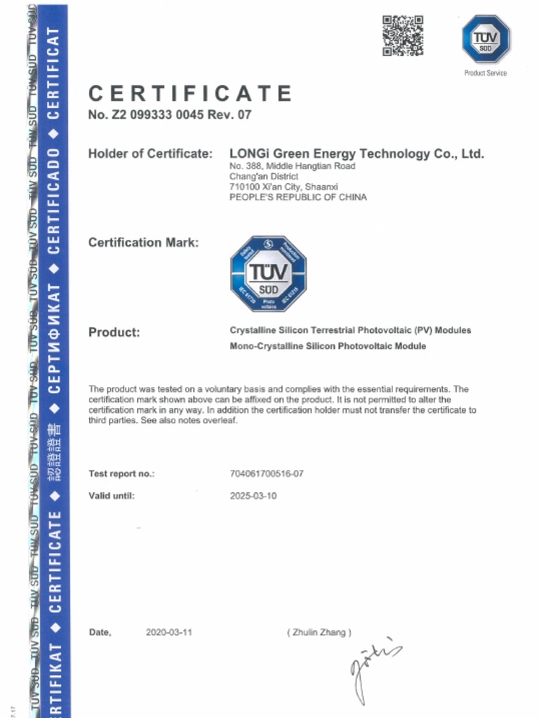 TUV SUD certificate