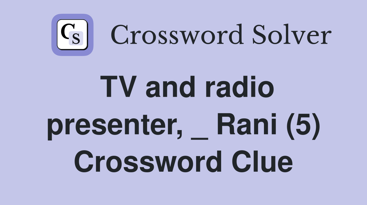 TV and radio presenter Rani (5) Crossword Clue Answers Crossword