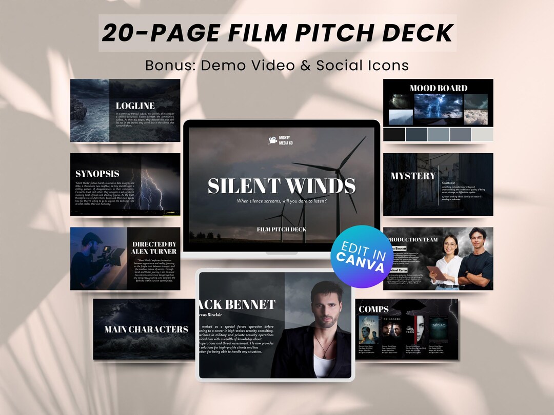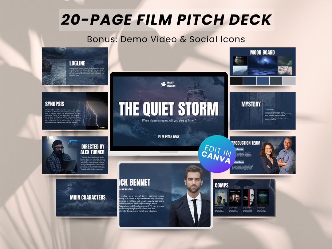 20 Page Film Pitch Deck Canva Template TV Pitch Deck Movie Pitching