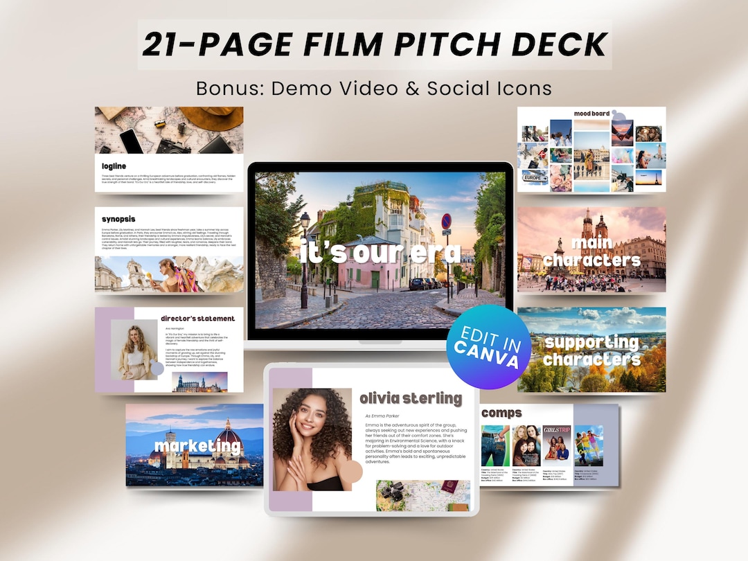 21 Page Film Pitch Deck Canva Template TV Pitch Deck Movie Pitching