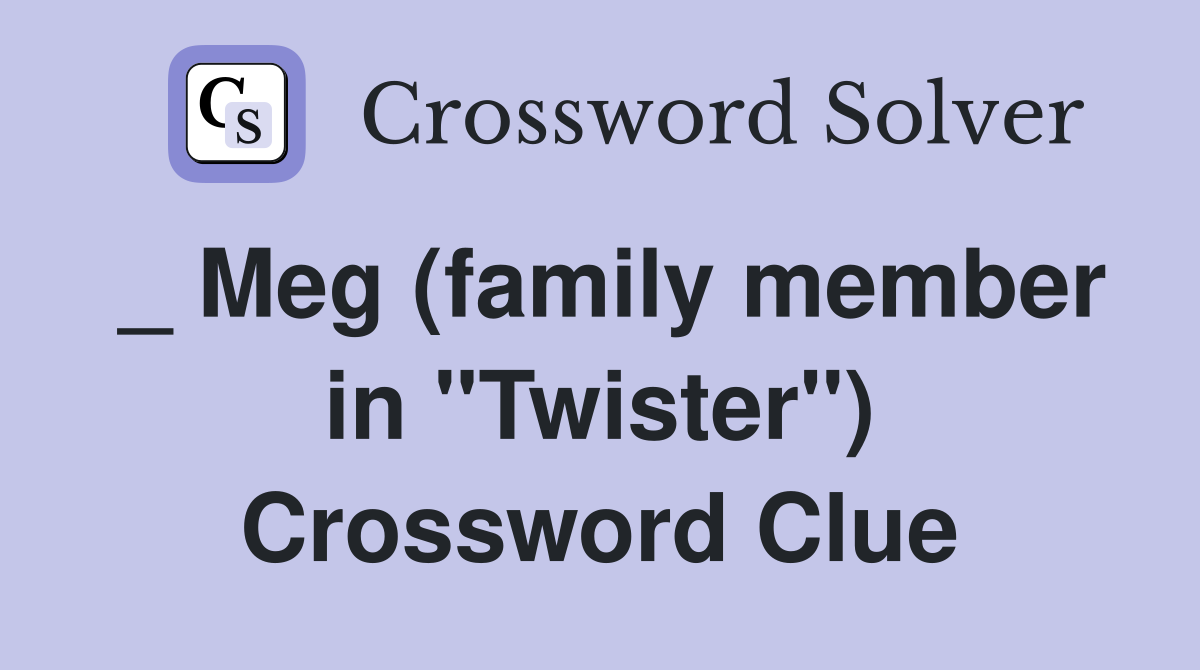 Meg (family member in quot Twister quot ) Crossword Clue Answers Crossword