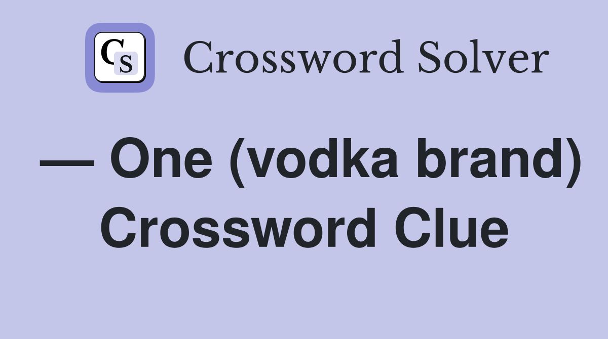One (vodka brand) Crossword Clue Answers Crossword Solver