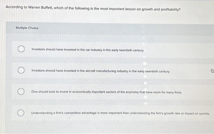 Solved According to Warren Buffett which of the following Chegg com