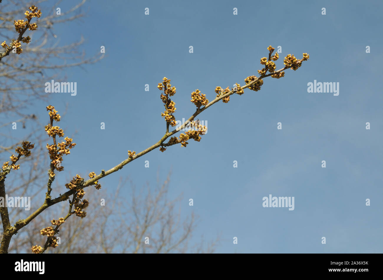 twig of hamamelis virginiana a deciduous shrub flowering in winter
