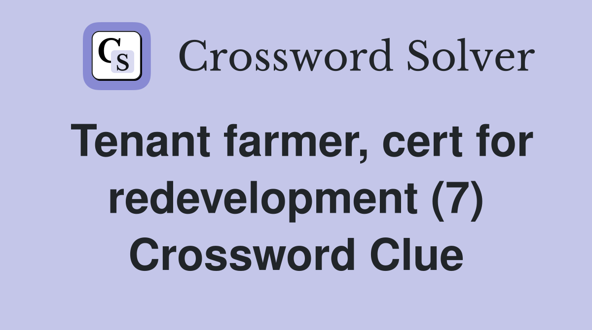 Tenant farmer cert for redevelopment (7) Crossword Clue Answers