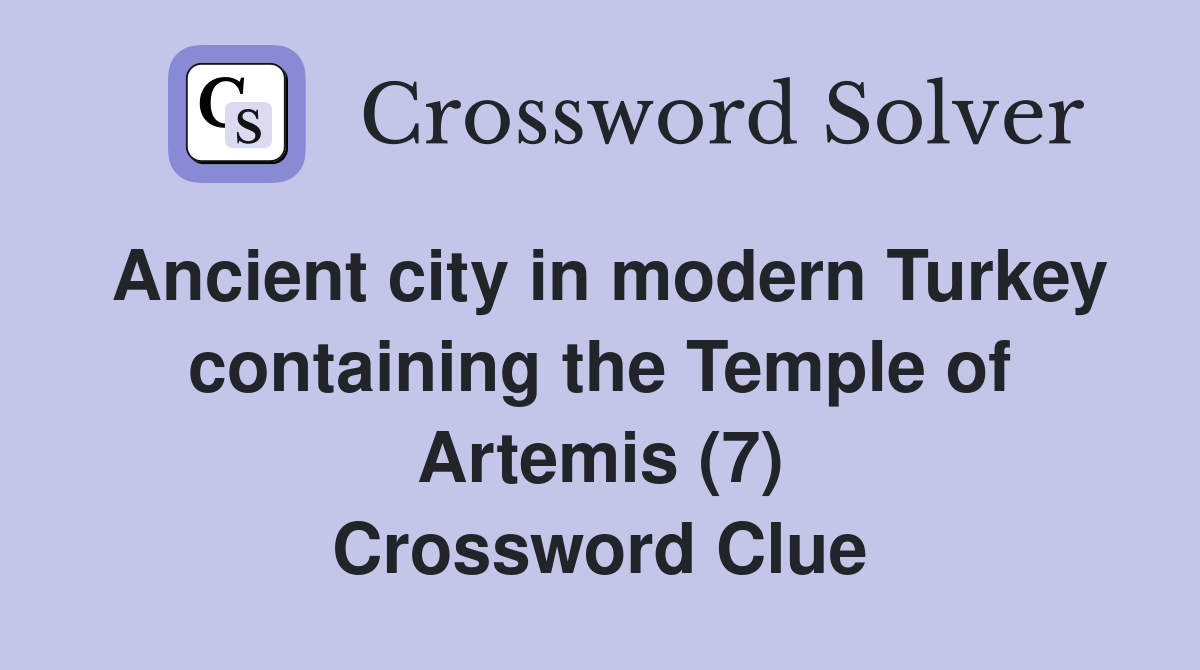 Ancient Greek city site of the Temple of Artemis (7) Crossword Clue