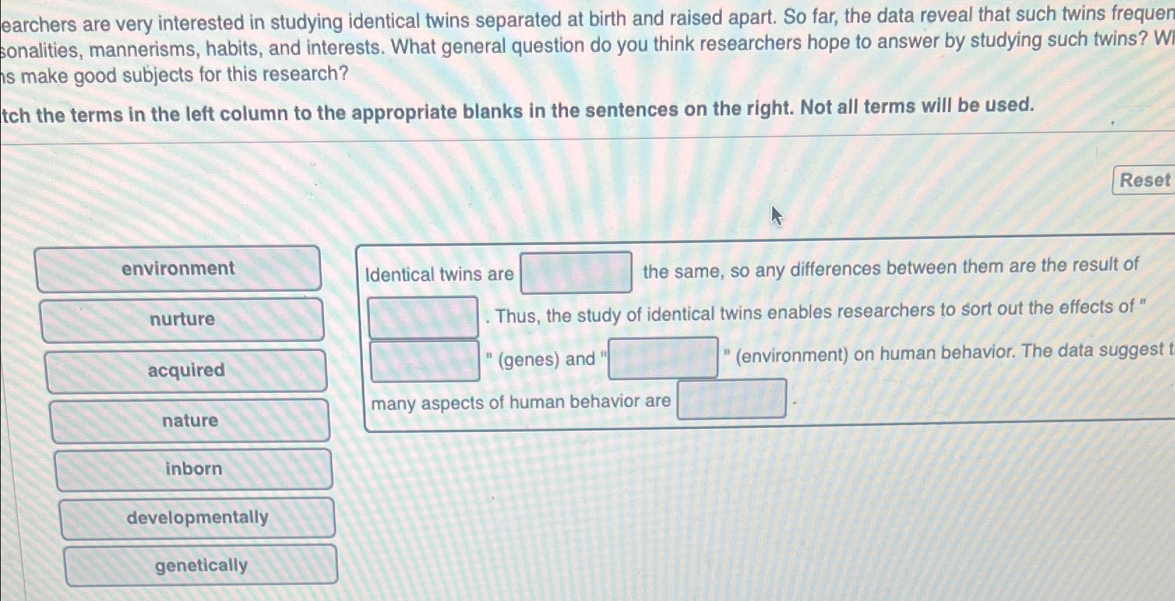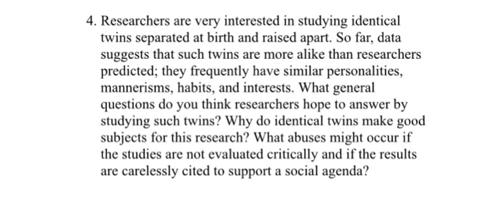 Solved Identical twins who are raised apart still end up Chegg com