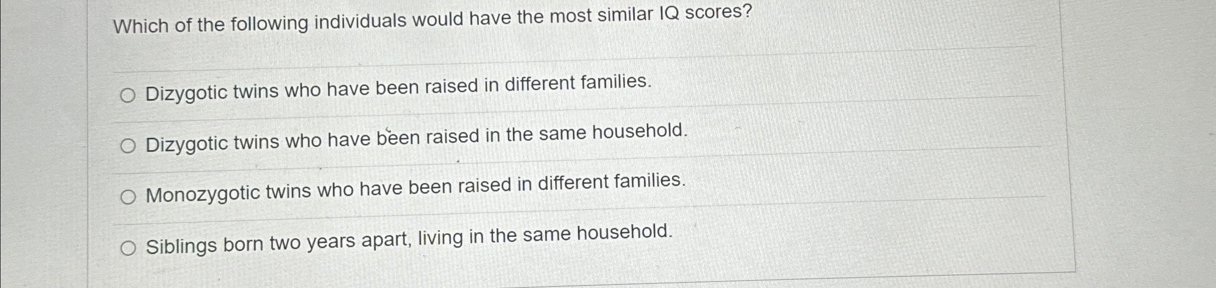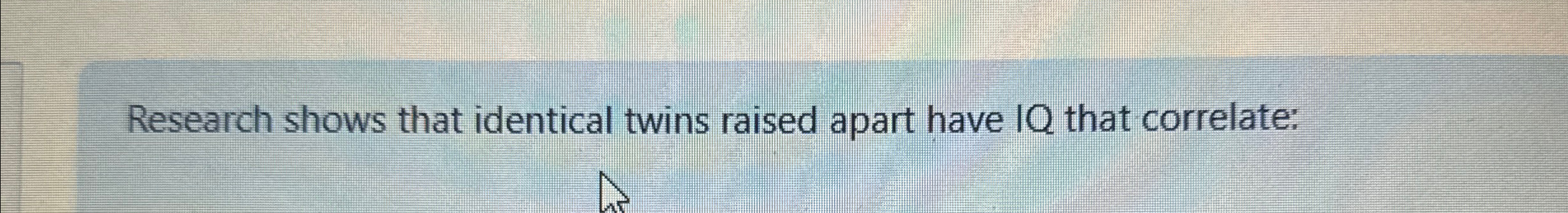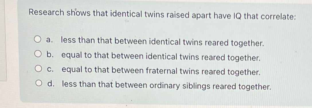 Solved Research shows that identical twins raised apart have Chegg com