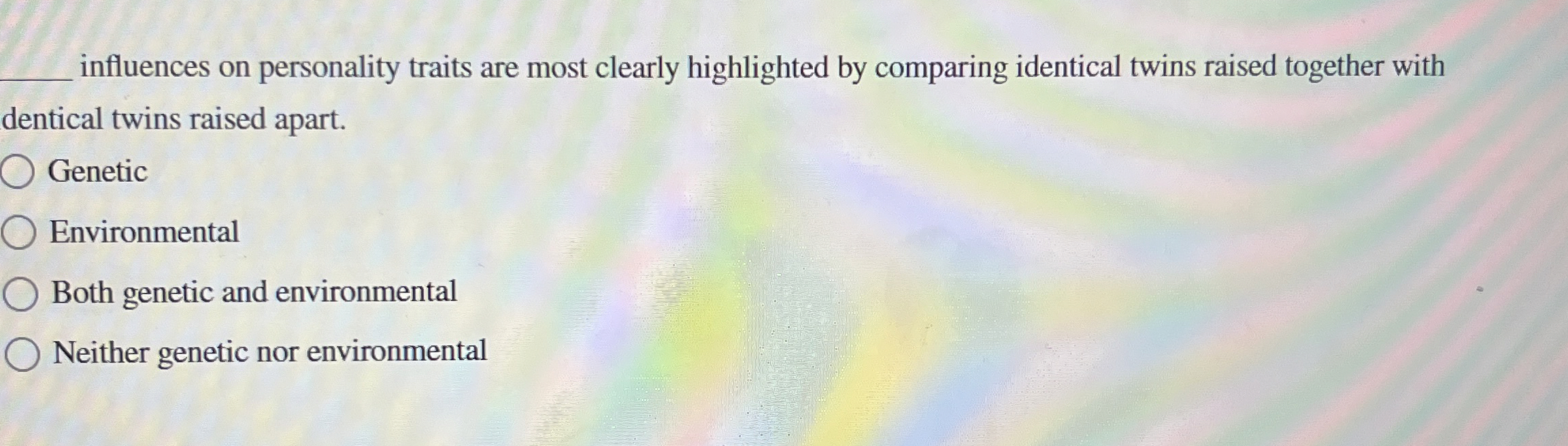 Solved q influences on personality traits are most clearly Chegg com