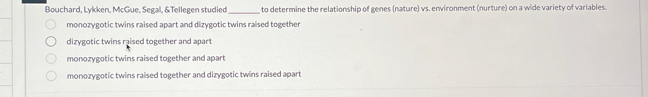 Solved Bouchard Lykken McGue Segal Tellegen studied to Chegg com