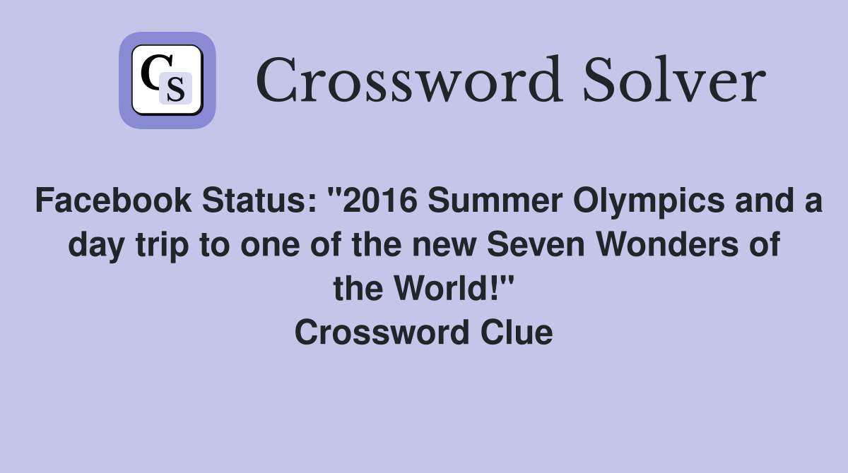 Facebook Status: quot 2016 Summer Olympics and a day trip to one of the new