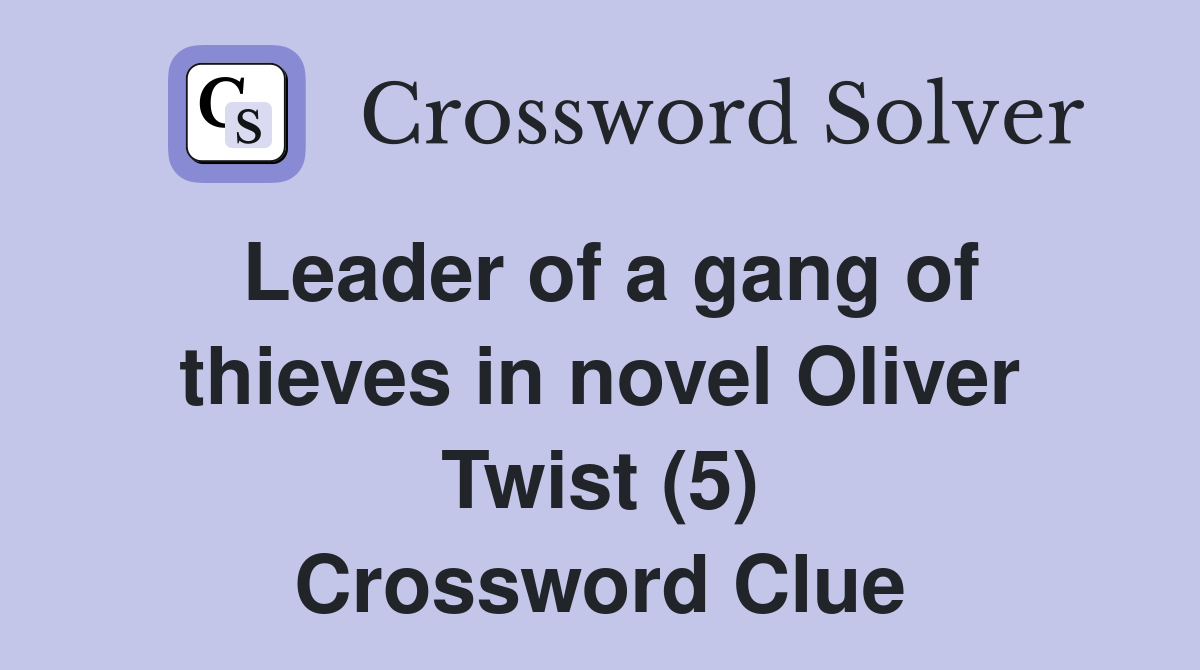 Leader of a gang of thieves in novel Oliver Twist (5) Crossword Clue