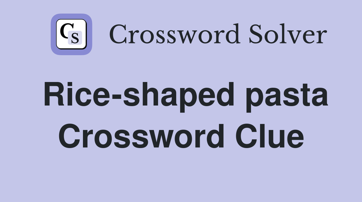 Rice shaped pasta Crossword Clue Answers Crossword Solver