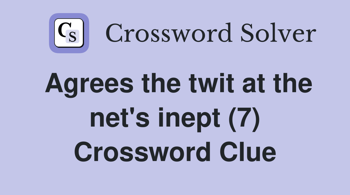 Agrees the twit at the net #39 s inept (7) Crossword Clue Answers