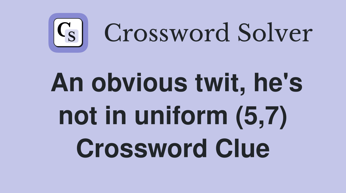 An obvious twit he #39 s not in uniform (5 7) Crossword Clue Answers