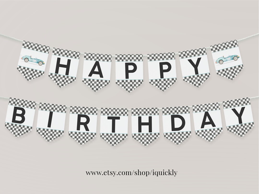 Racing Banner Race Car Birthday Banner Two Fast Birthday Banner Fast
