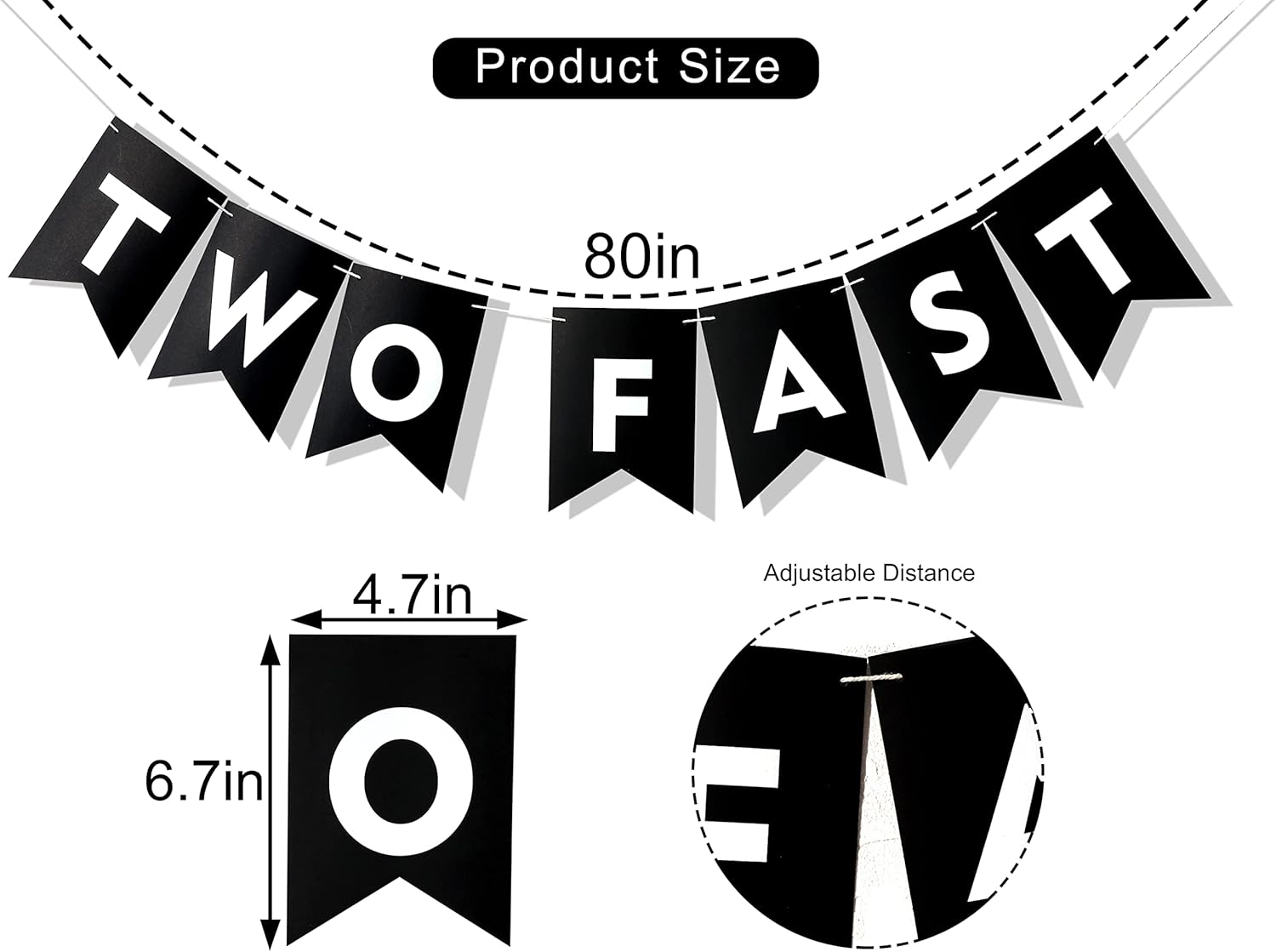 Race Car Birthday Banner Two Fast 2nd Birthday Decorations Fast One