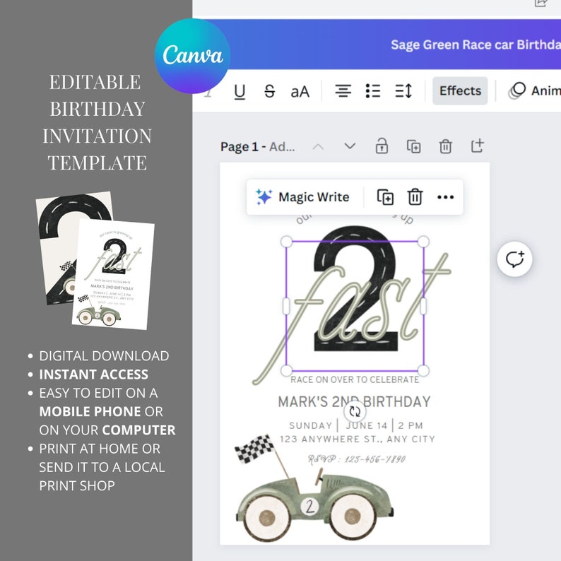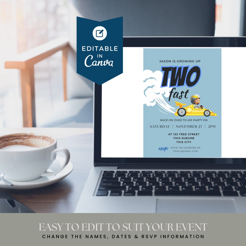 Editable Two Fast Birthday Invitation for Instant Digital Download