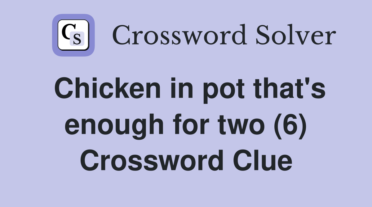 Chicken in pot that #39 s enough for two (6) Crossword Clue Answers