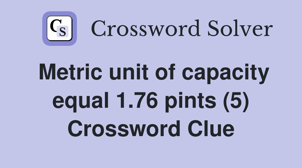 Metric unit of capacity equal 1 76 pints (5) Crossword Clue Answers