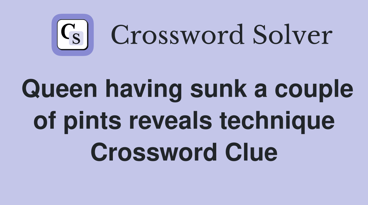 Queen having sunk a couple of pints reveals technique Crossword Clue