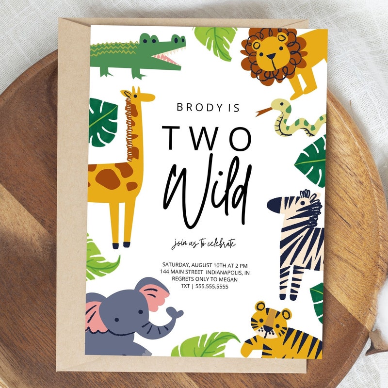 Two Wild Birthday Invitation Template Printable Boy Invitation Etsy