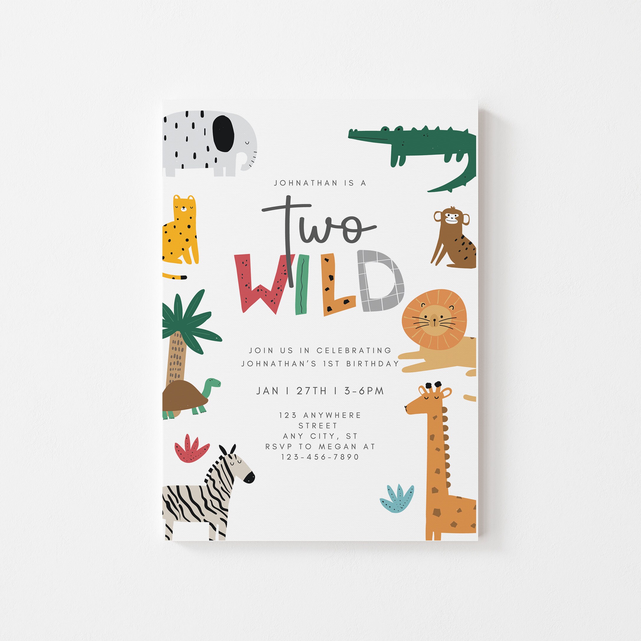 Editable Two Wild Birthday Invitation Template