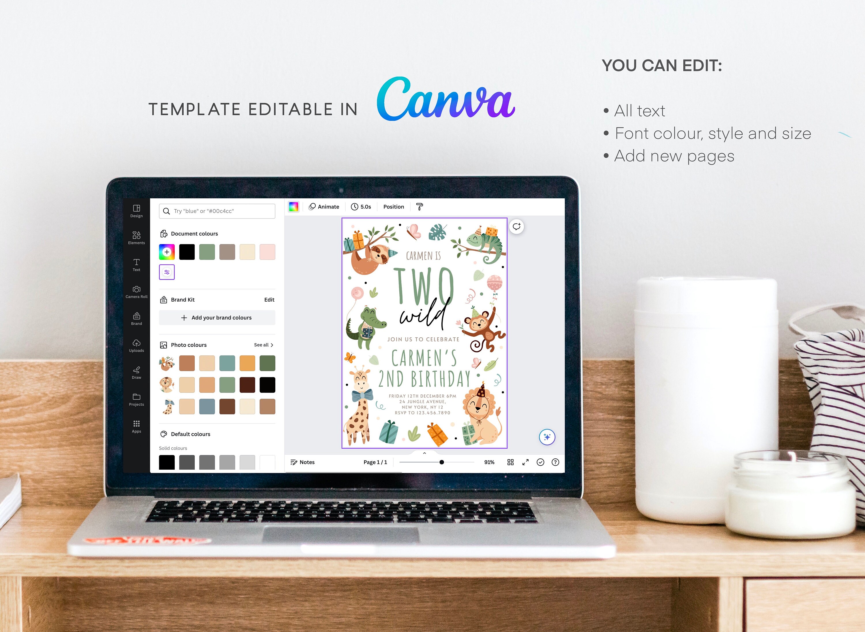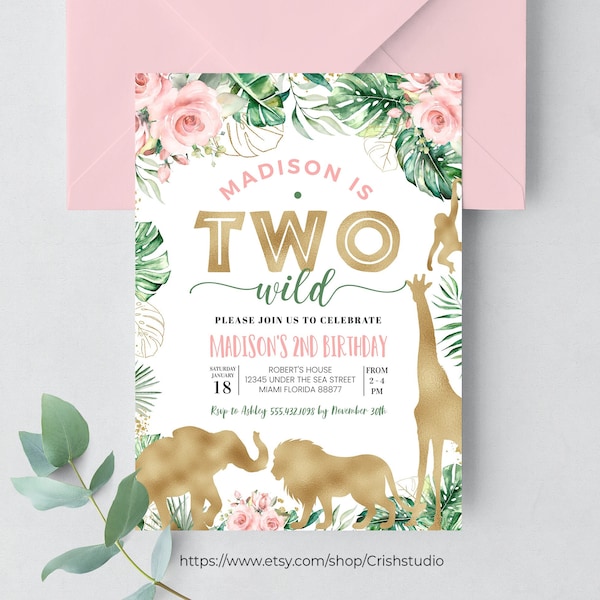 Two Wild Birthday Invitation Editable Birthday Invitation Template Two