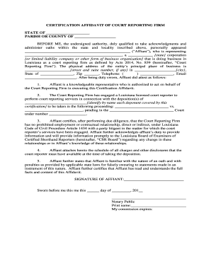 Fillable Online CERTIFICATION AFFIDAVIT OF COURT REPORTING FIRM STATE