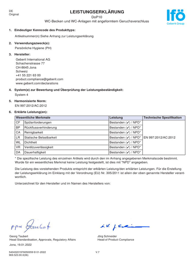 IFÖ Vinta Certificate of Conformity PDF Administrative Law