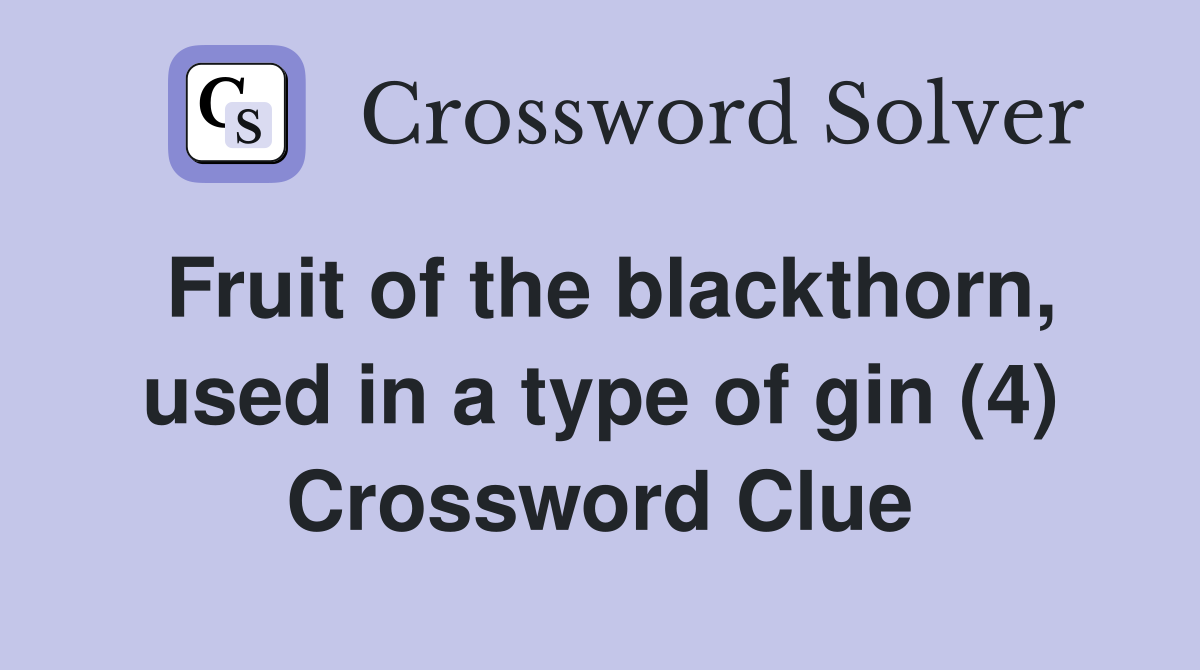 Fruit of the blackthorn used in a type of gin (4) Crossword Clue