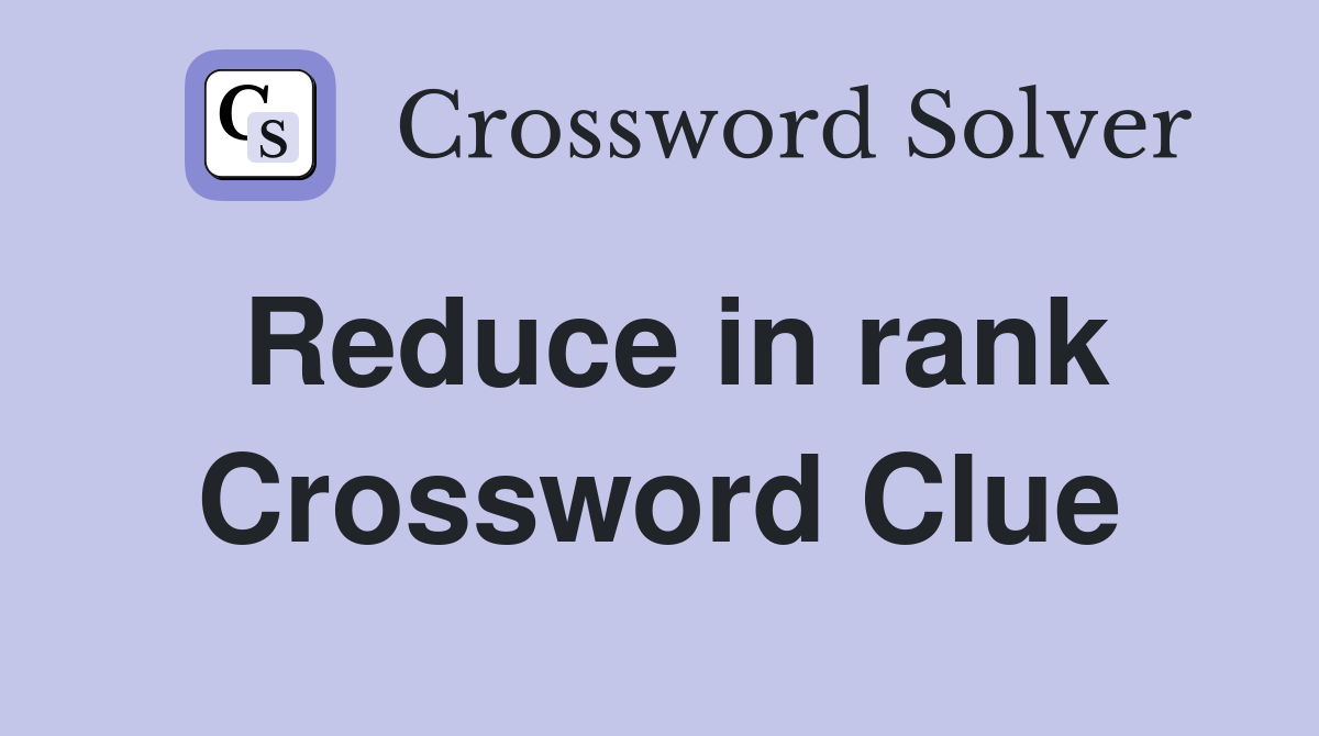Reduce in rank Crossword Clue Answers Crossword Solver