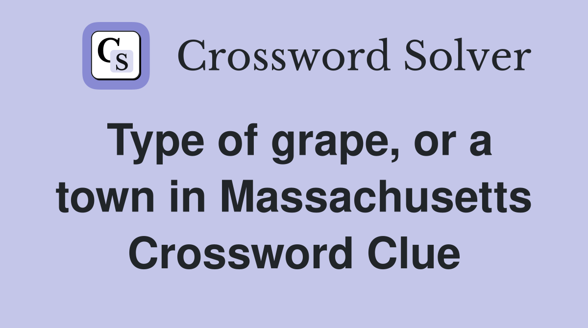 Type of grape or a town in Massachusetts Crossword Clue Answers