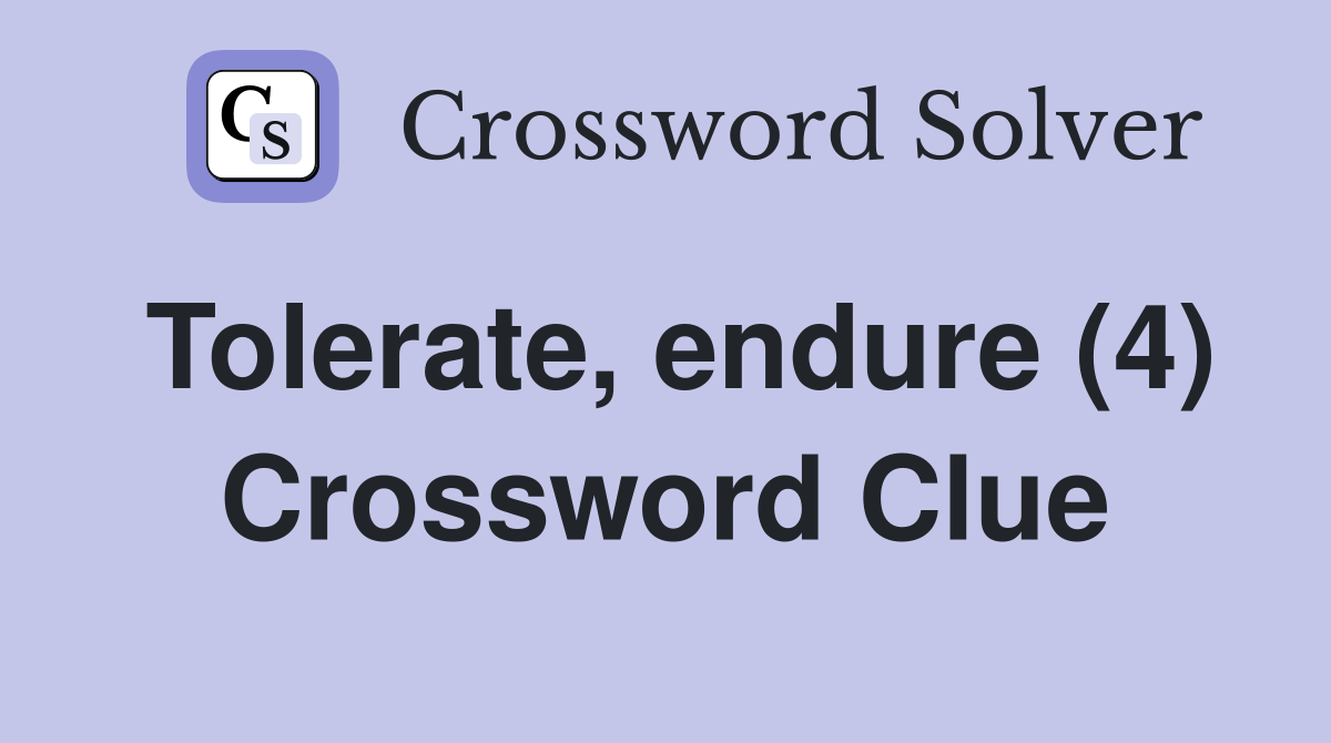 Tolerate endure (4) Crossword Clue Answers Crossword Solver