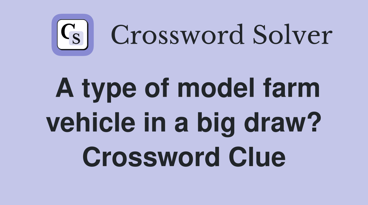 A type of model farm vehicle in a big draw? Crossword Clue Answers