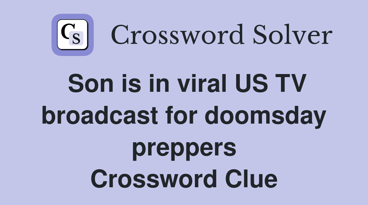 Son is in viral US TV broadcast for doomsday preppers Crossword Clue
