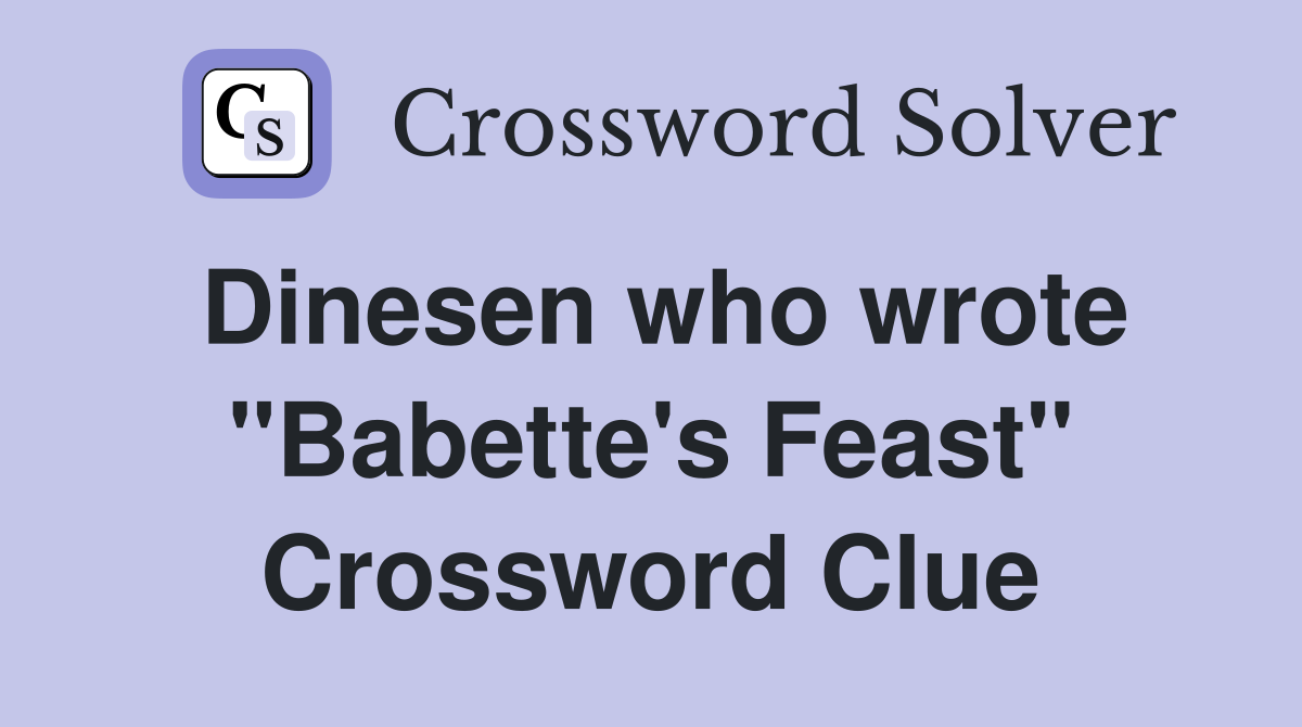 Dinesen who wrote quot Babette #39 s Feast quot Crossword Clue Answers