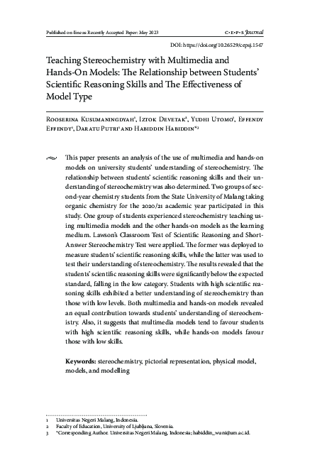 (PDF) Teaching Stereochemistry with Multimedia and Hands On Models: The
