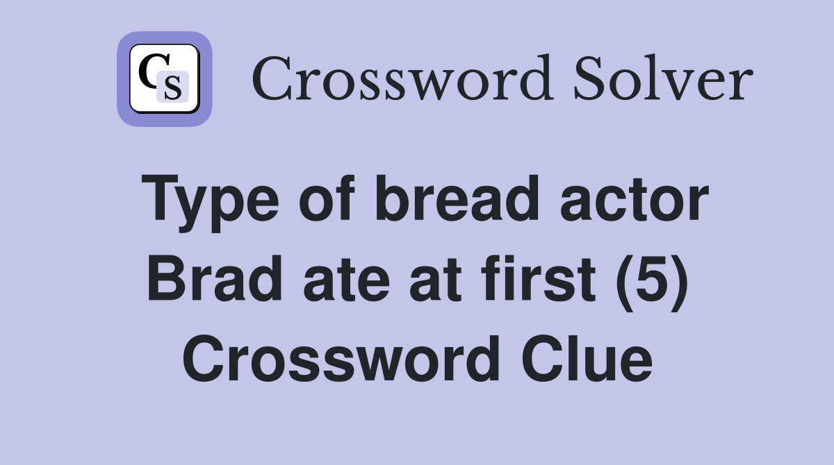 Type of bread actor Brad ate at first (5) Crossword Clue Answers