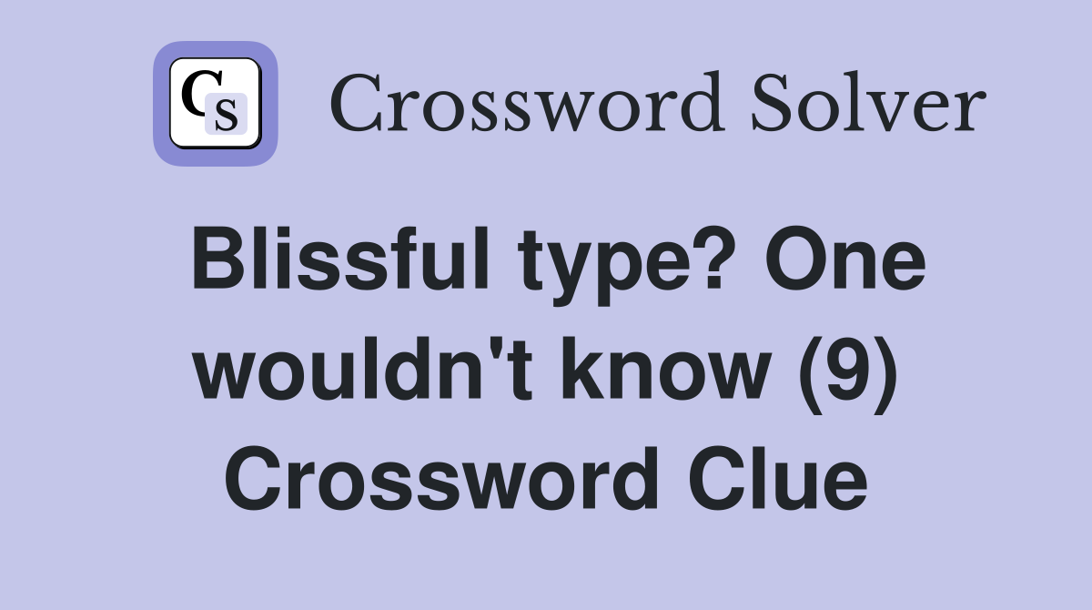Blissful type? One wouldn #39 t know (9) Crossword Clue Answers