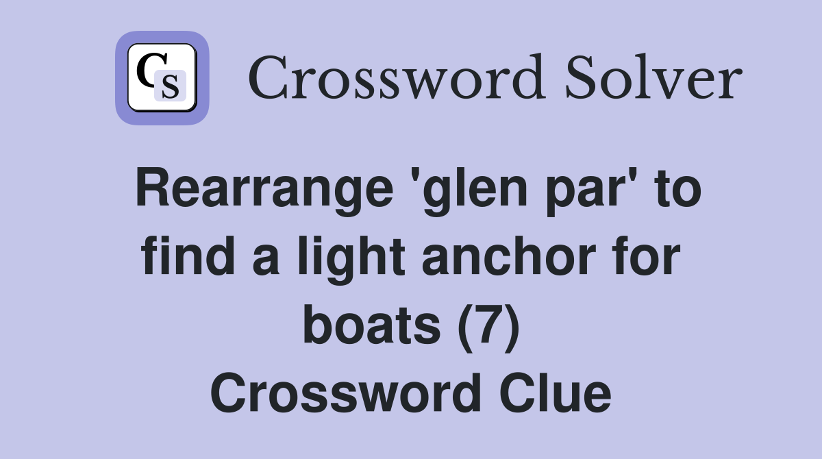 Rearrange #39 glen par #39 to find a light anchor for boats (7) Crossword