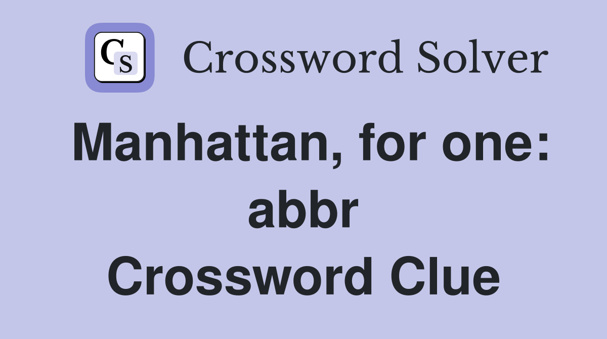 Manhattan for one: abbr Crossword Clue Answers Crossword Solver