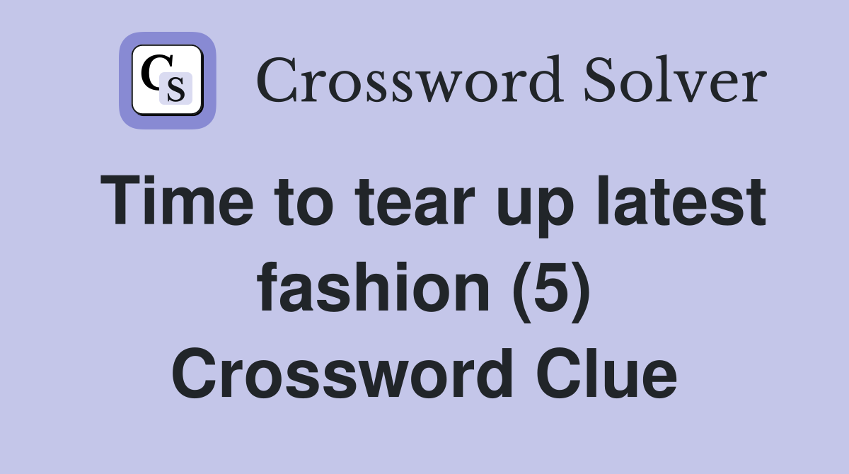 Time to tear up latest fashion (5) Crossword Clue Answers Crossword