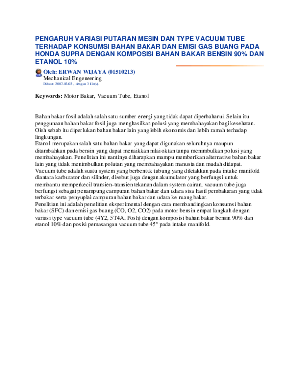 (PDF) Pengaruh Variasi Putaran Mesin Dan Type Vacuum Tube Terhadap
