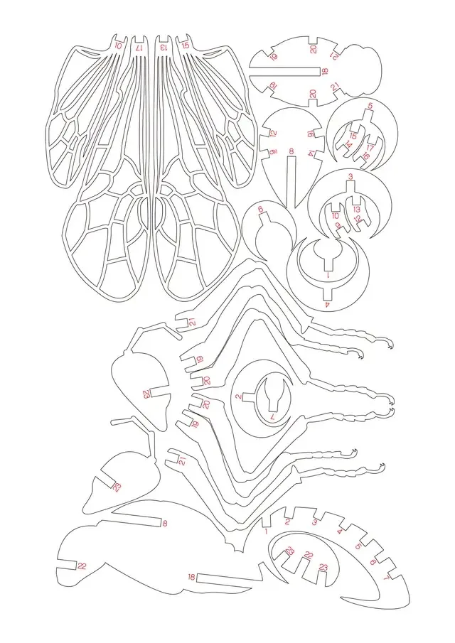 Free Laser Cut Wasp 3D Puzzle SVG DXF File Download TemplatesArea
