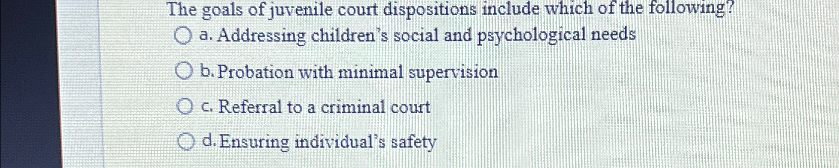 Solved The goals of juvenile court dispositions include Chegg com