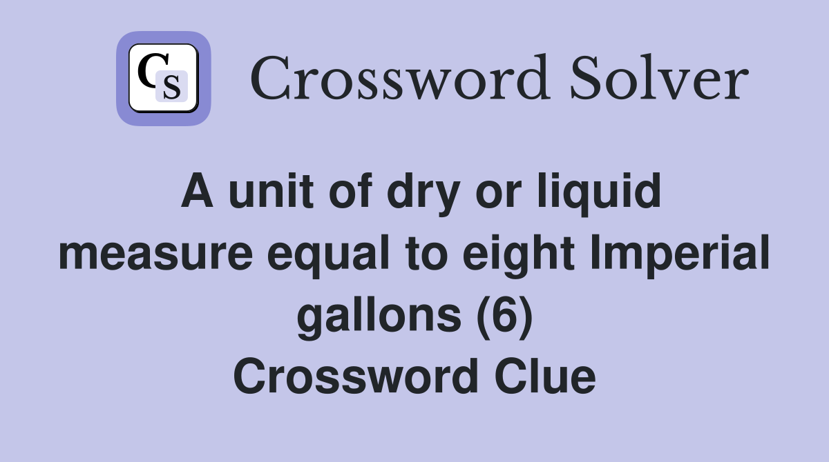 A unit of dry or liquid measure equal to eight Imperial gallons (6