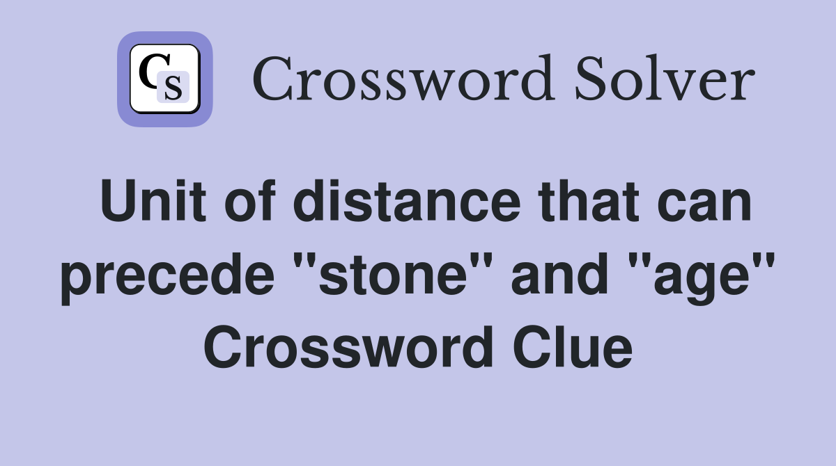 Unit of distance that can precede quot stone quot and quot age quot Crossword Clue